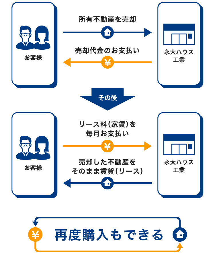 永大ハウス工業が、あなたの家を購入し、そのままリースさせていただきます。